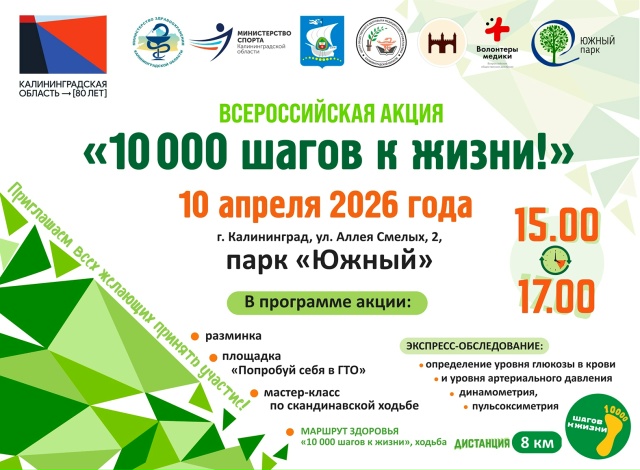 А теперь ВНИМАНИЕ! 10 апреля парк Южный приглашает вас присоединиться к Всероссийской акции "10 000 шагов", посвящённой Всемирному дню здоровья!